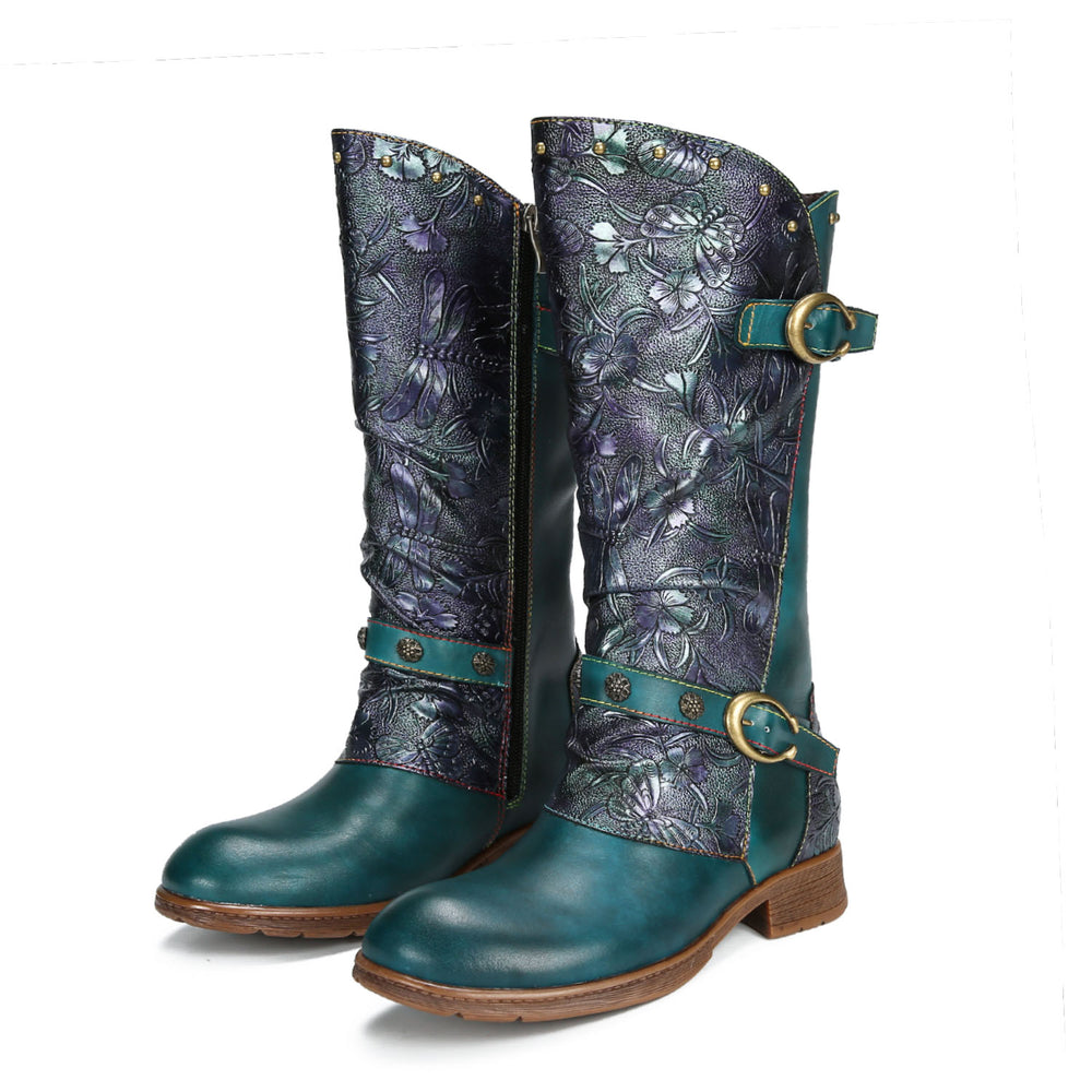 Vintage Handmade Embossed Dragonfly Flat Shoes