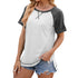 Color Block Round Neck Loose Fit Short Sleeve with Slit T-shirt