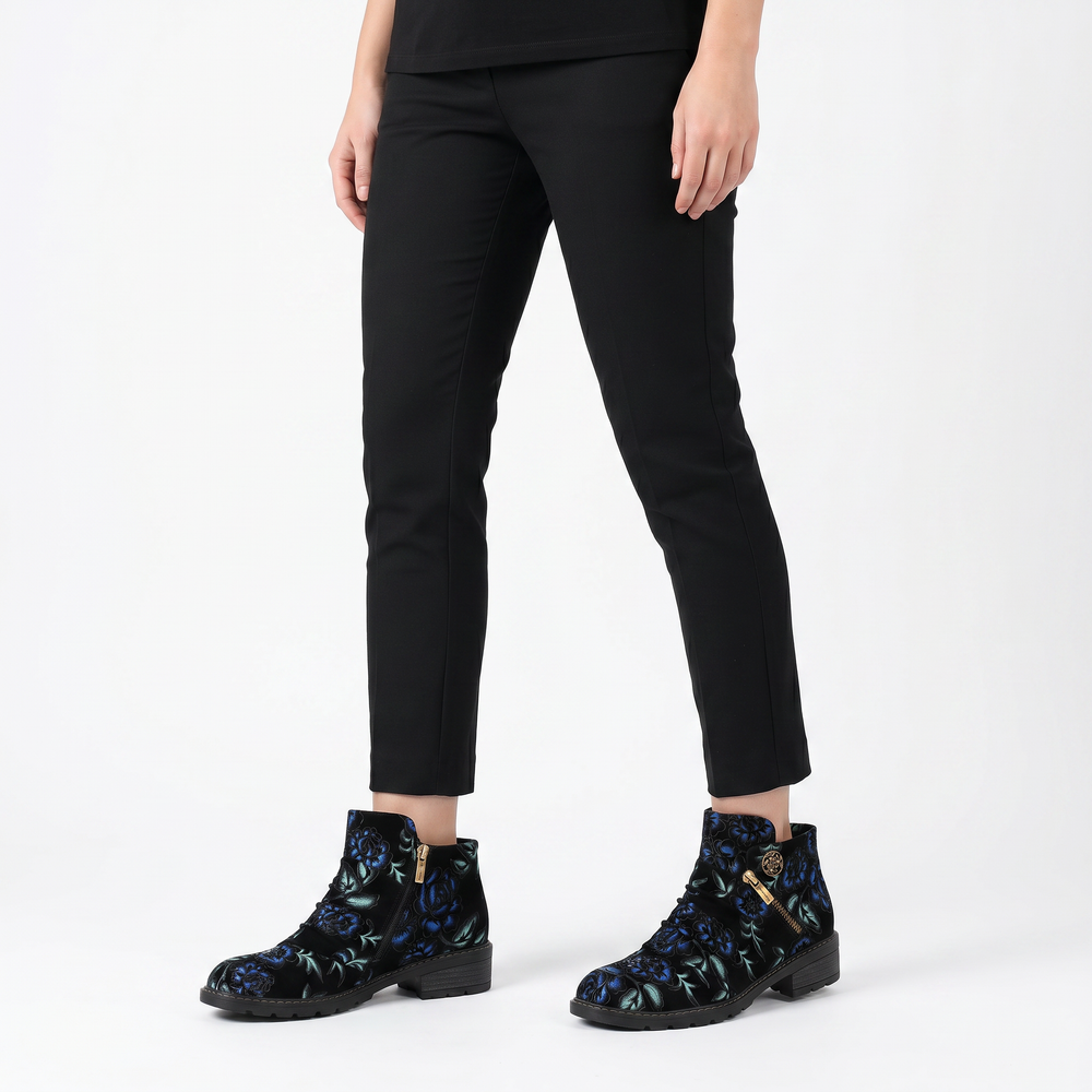 Midnight Floral Velvet Ankle Boots