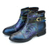 These flat ankle boots showcase an exquisite dragonfly and butterfly embossed pattern on the upper, adding a touch of natural charm to your footwear collection. The boot's toe is crafted with a combination of faux crocodile texture and metallic material, adorned with twinkling star-like sequins that shimmer brilliantly in the light.