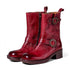 The leather texture of these boots emits a captivating sheen under the light, complemented by eye-catching metal buckles and studs that not only give the boots a bold, rugged vibe but also make the overall design unique and daring.