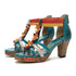 Hand-painted and embossed leather sandals featuring 3D leather flowers and a floral embossed leather elastic insole.