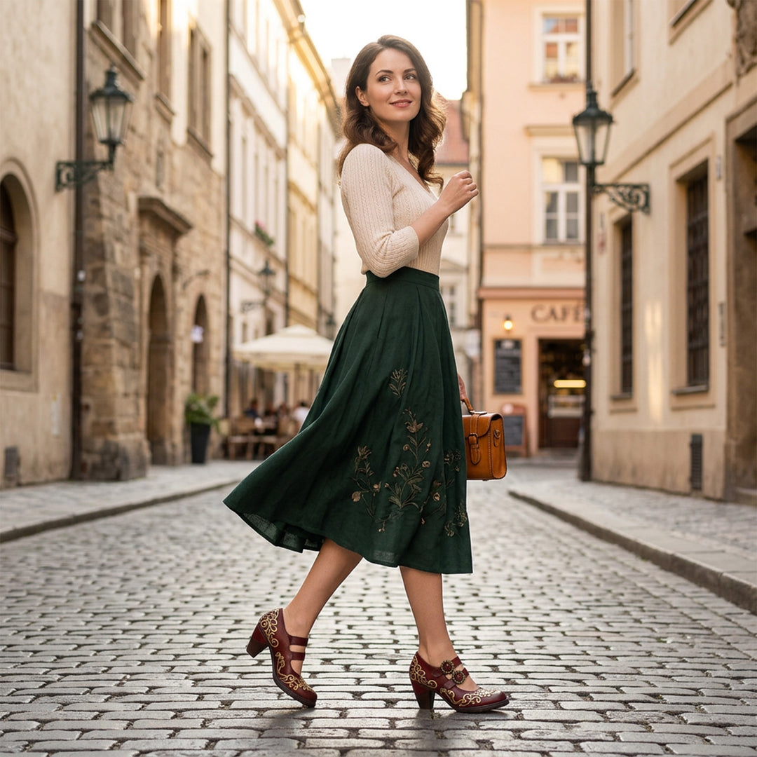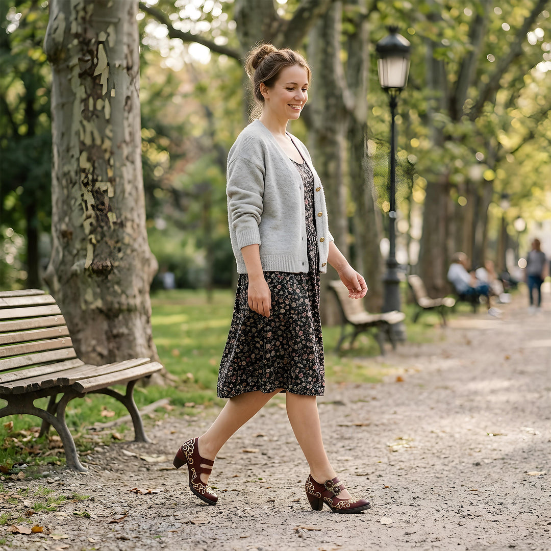 ✅ Hardware: Solid brass floral buckles