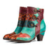 Bring color and creativity to your look with these patchwork ankle boots, showcasing teal, orange, and patterned panels joined by vintage toggle straps. Designed with a comfortable mid-heel and an art-inspired aesthetic, they are ideal for both casual days and special occasions.