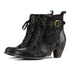 Step into timeless elegance with these ankle boots featuring intricate floral patterns, vintage lace-up design, and a bold buckle accent. The sturdy block heel and premium craftsmanship make these boots a perfect combination of style and comfort for any occasion.