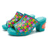 Blue and green shoes with four different colors of flowers, like flowers and green leaves, harmonious and fresh.