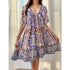V-Ausschnitt Urlaub Freizeit gedrucktes Kleid
