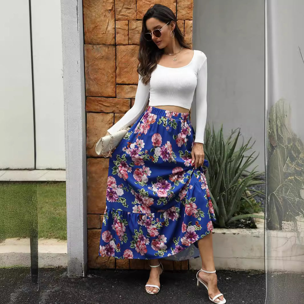 Vintage Floral Ruffled Patchwork Maxi Skirt