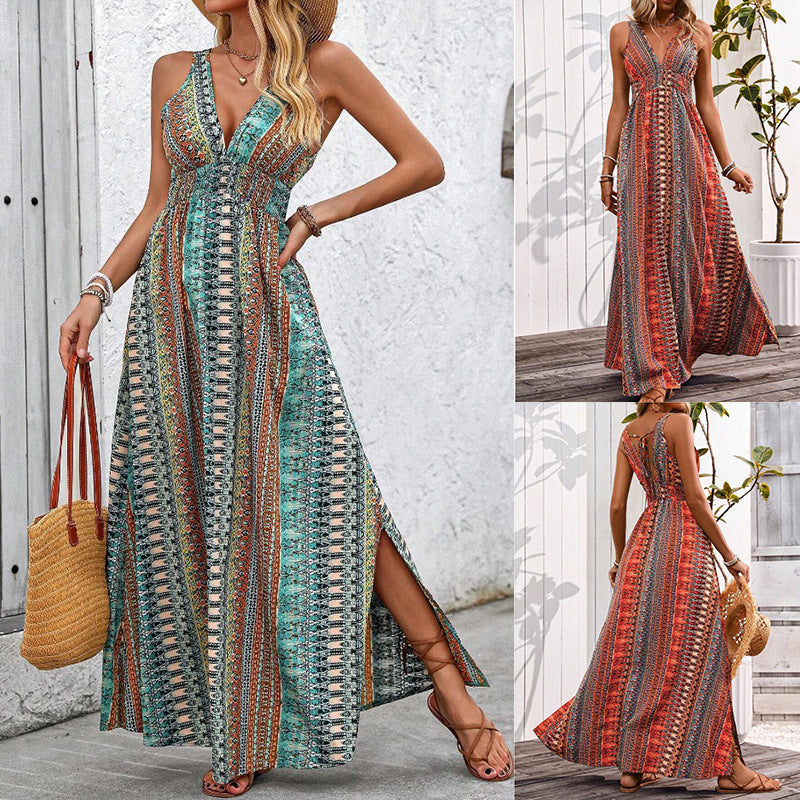 Stylish Sexy Deep V-Neck Beach Vacation Dress
