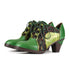 This elegant lace-up mid-heel shoe combines the beauty of nature and art, featuring vibrant genuine leather and colorful embroidered fabric for a unique vintage vibe. The sides are adorned with lace trim and botanical patterns, further highlighting the layered design and intricate craftsmanship.
