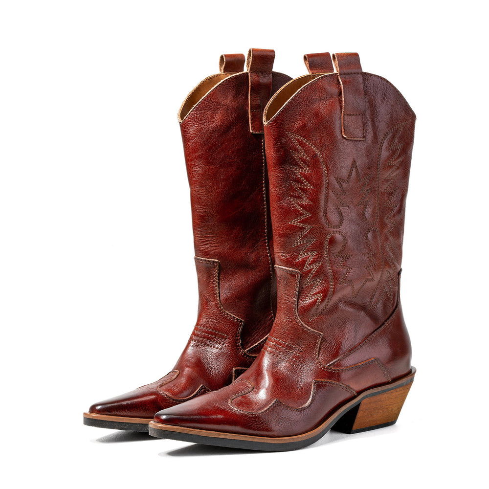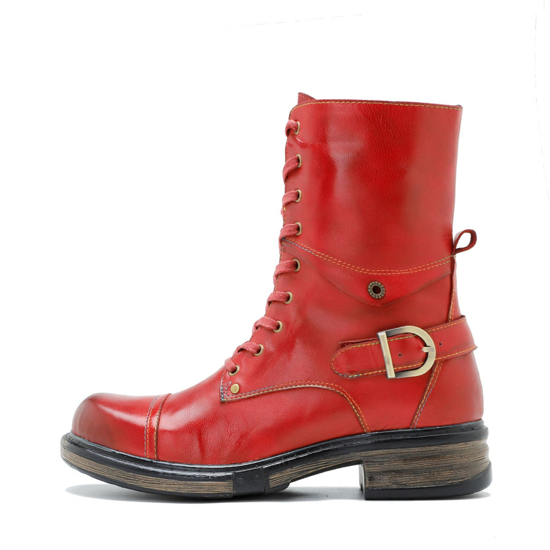 Bottes en cuir authentiques confortables avec lacets et fermetures à glissière