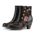Ces bottes sont un véritable chef-d'œuvre du charme vintage. Fabriqués en cuir noir lisse, ils comportent des détails de bouton doré et des motifs floraux richement brodés le long des côtés. Le talon bas en bloc assure un confort toute la journée, les rendant parfaits pour les rassemblements artistiques, les événements du soir ou l'élévation de votre garde-robe de tous les jours avec une sophistication intemporelle.