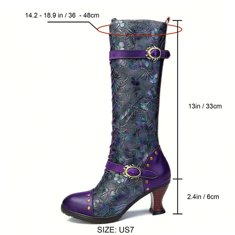 Les bottes combinées en cuir de style occidental à couper le souffle présentent de jolis motifs en relief, des boutons en laiton et des fermetures à glissière. La doublure est associée à une fourrure de fibre synthétique pour garder vos pieds au chaud tout au long de l'hiver.