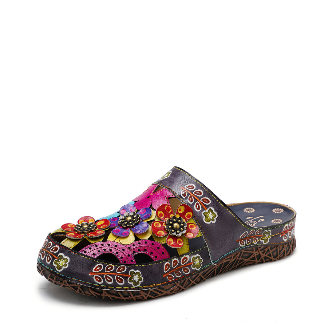 Sandali colorati in cuoio floreale in rilievo floreale