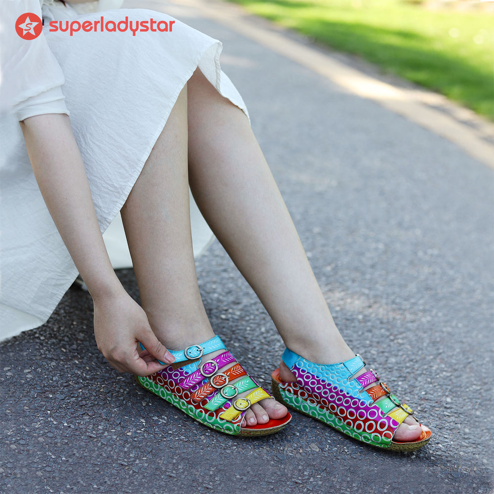 Sandali colorati stampati retrò fatti a mano