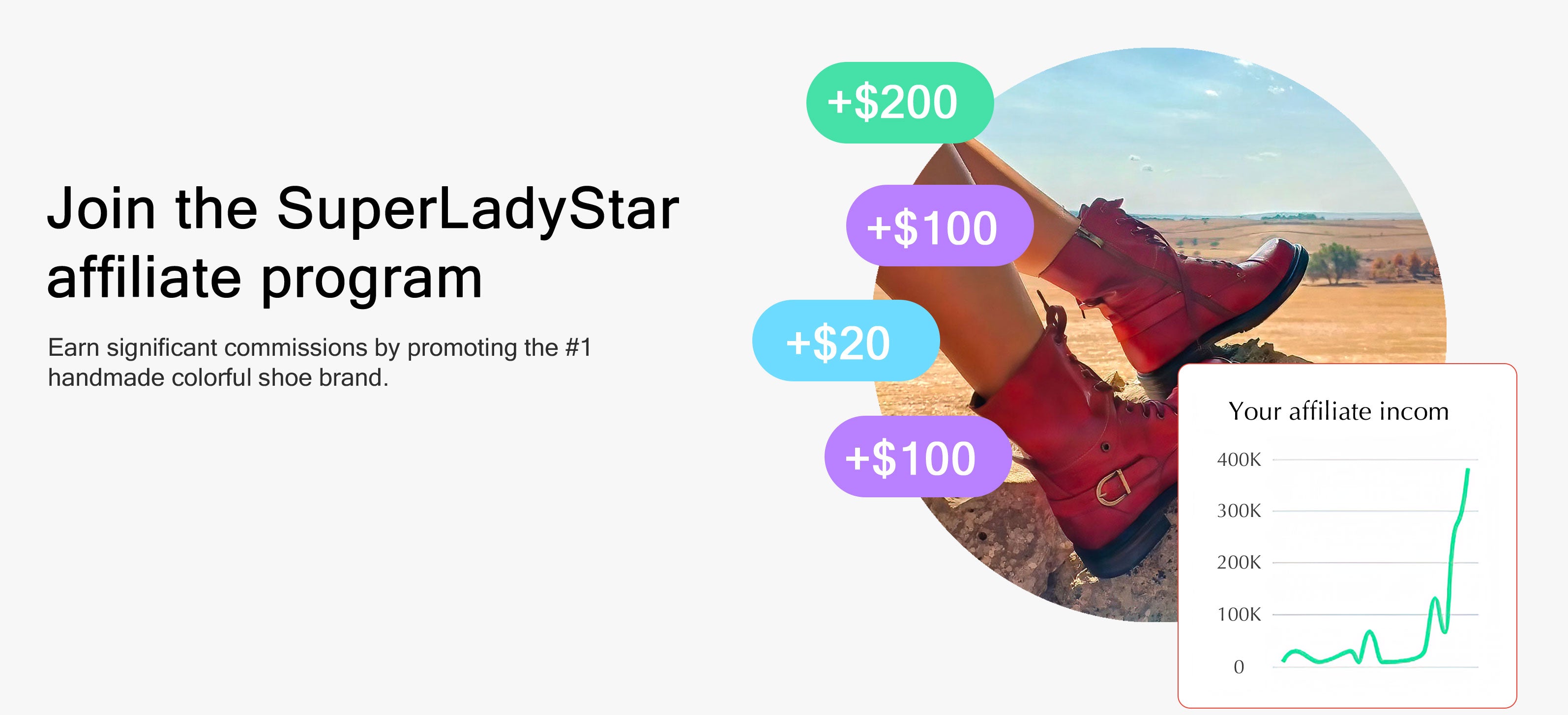 Affiliates earn a generous commission rate on sales referred to superladystar shoes. Our shoes are designed to make your followers stop and turn heads.