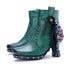 Essas botas de tornozelo exclusivas combinam perfeitamente o charme vintage com o artesanato moderno, mostrando detalhes requintados. Os botões antigos de bronze ao lado são cercados por pétalas de couro artesanais, acrescentando um toque de elegância romântica ao design geral.