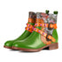 Essas botas coloridas e artísticas do tornozelo são perfeitas para mulheres que gostam de se destacar. Apresentando uma combinação ousada de couro verde, tiras de laranja com pregos rosa e padrões boêmios intrincados, essas botas são uma peça de declaração verdadeira. As fivelas decorativas de estilo vintage e detalhes florais acrescentam um toque caprichoso, enquanto o salto baixo garante conforto para o desgaste diário.